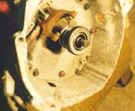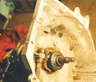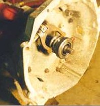 Note the actuating arm at bottom pulled forward of the bell housing edge.